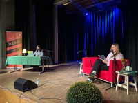 Musikalisch hat Dominic Bennett mit seinen eigenen Songs den Abend bereichert und für viel Begeisterung gesorgt. Nach seiner Konzerteinlage nahm er noch auf dem "Interviewsofa" bei Gastgeberin und Moderatorin Bettina Kinnemann Platz und gewährte ein paar Einblicke in seine musikalische Welt.